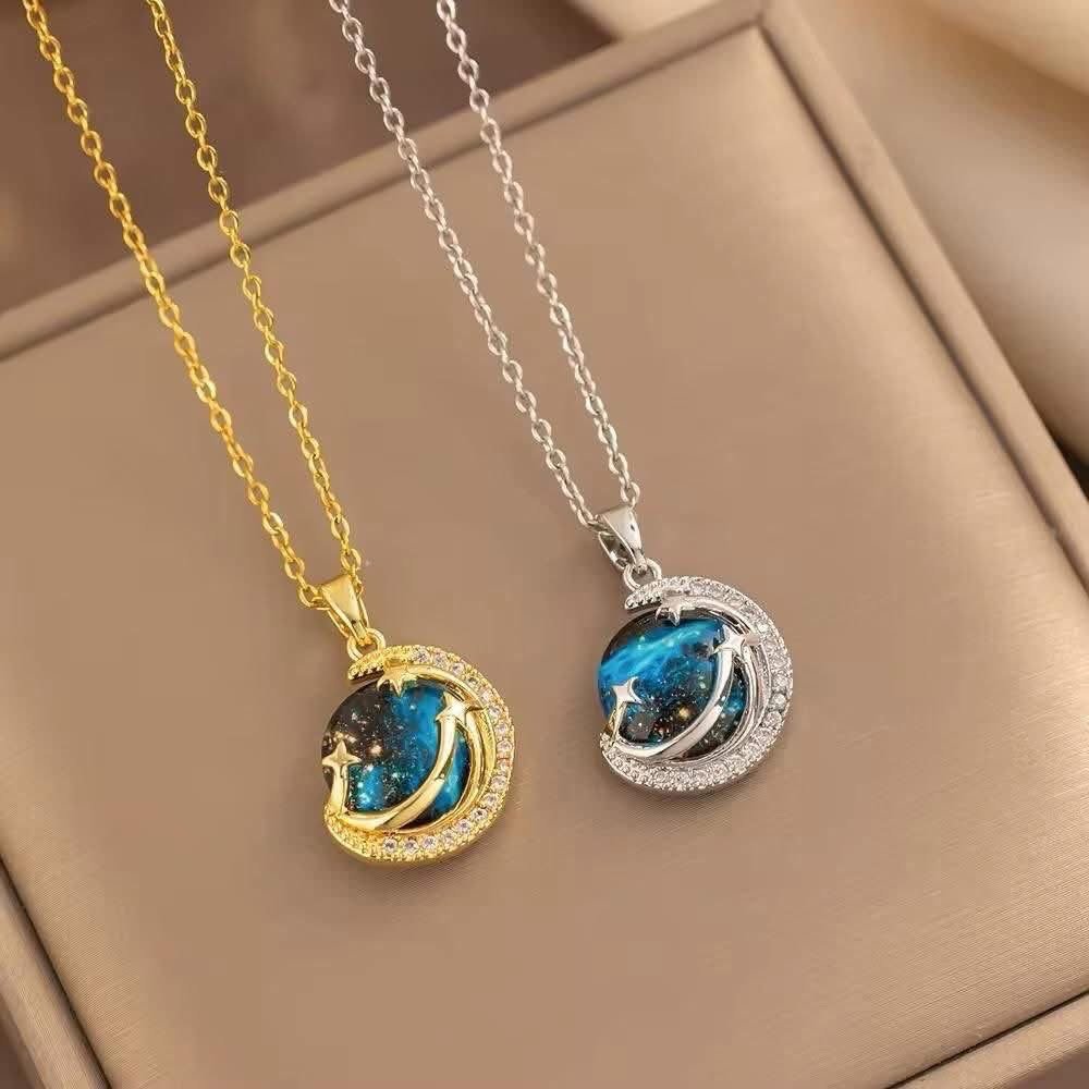 گردن بند شیک کهکشان ساخت از استیل در دو رنگ مختلف طلایی و نقره یی
