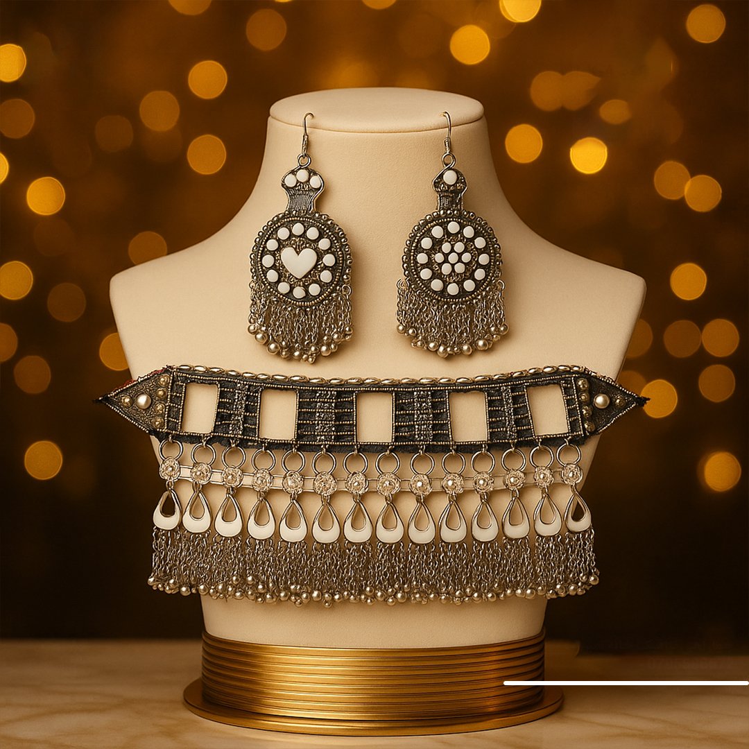اگر میخواهید لباسهای روزمره یا محفل خود را زیباتر و درخشانتر کنید، این سیت ګردن بند زیبا و چشمنواز بهترین انتخاب برای شماست.