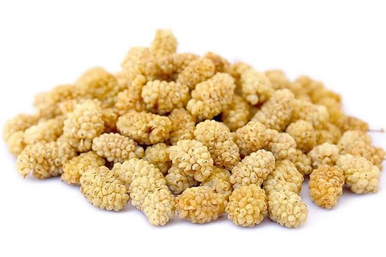 توت سفید طبیعی و خشکشده افغانستان، شیرین، نرم و کاملاً سالم. منبع خوب انرژی و مناسب برای میانوعده سالم و استفاده روزانه.